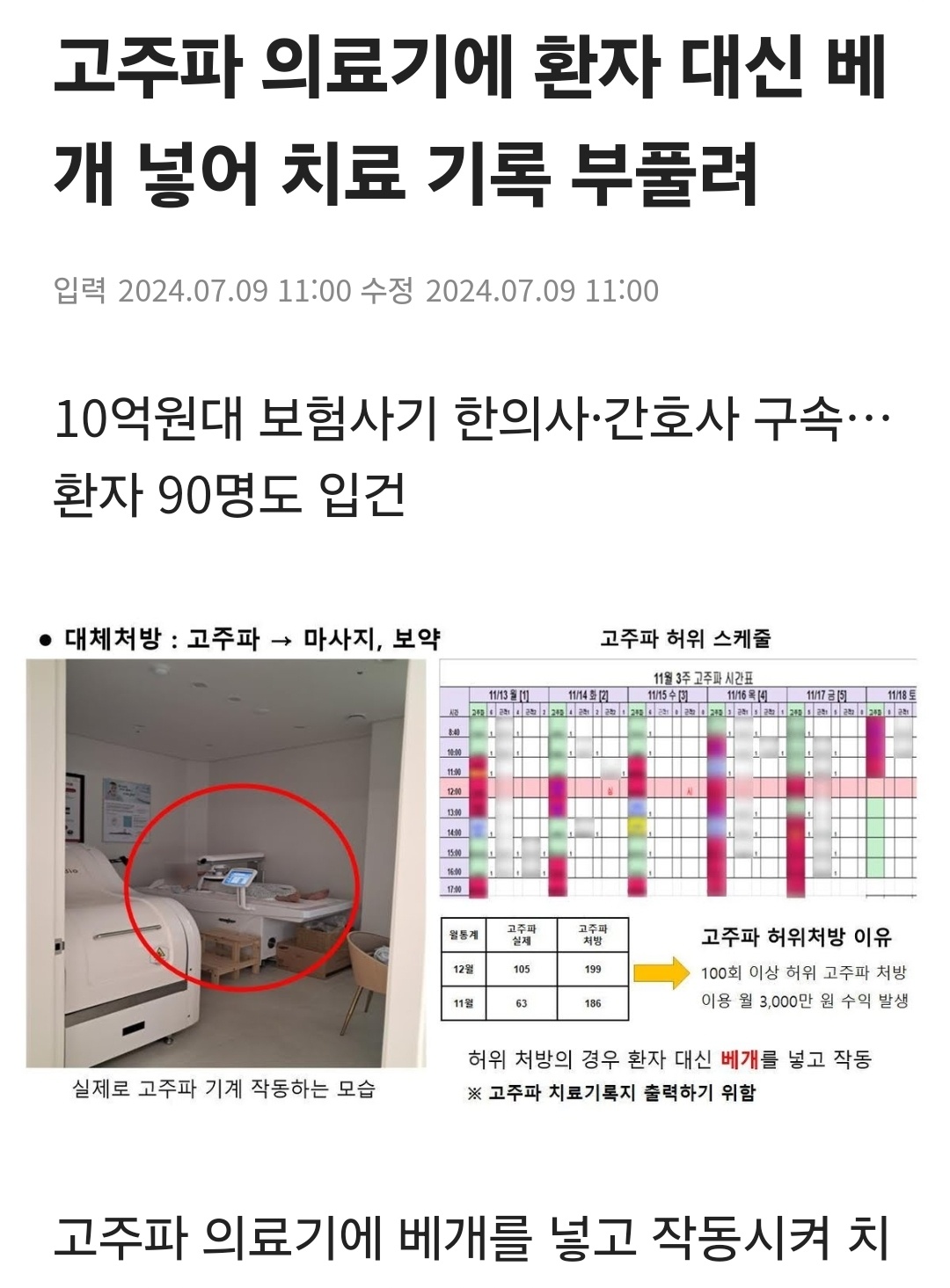 고주파 의료기에 환자 대신 베개 넣어 치료 기록 부풀려 | 연합뉴스