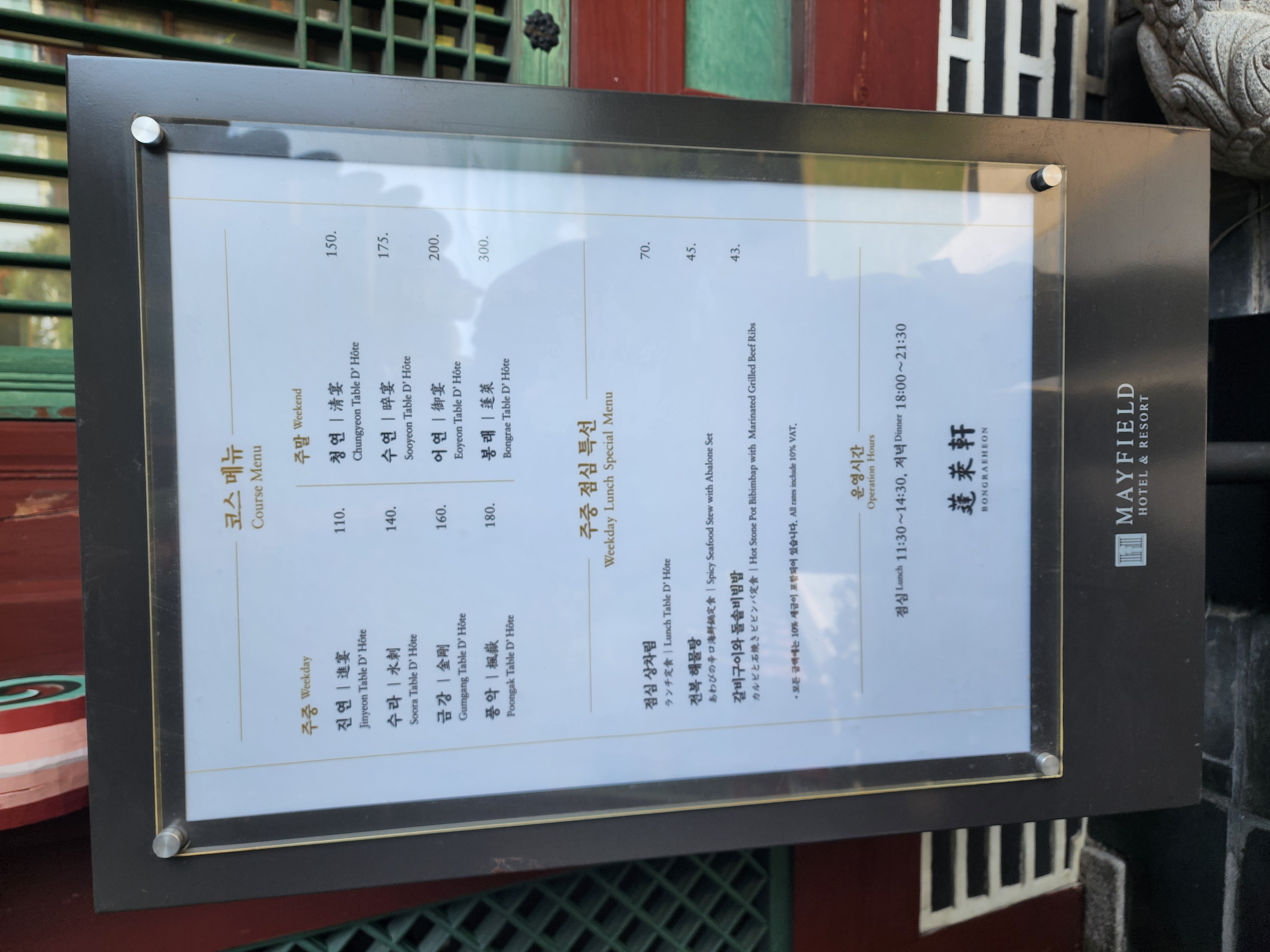 - 평일과 주말, 런치와 디너에 따라 메뉴와 가격 차이가 크니 참고 필요[5]