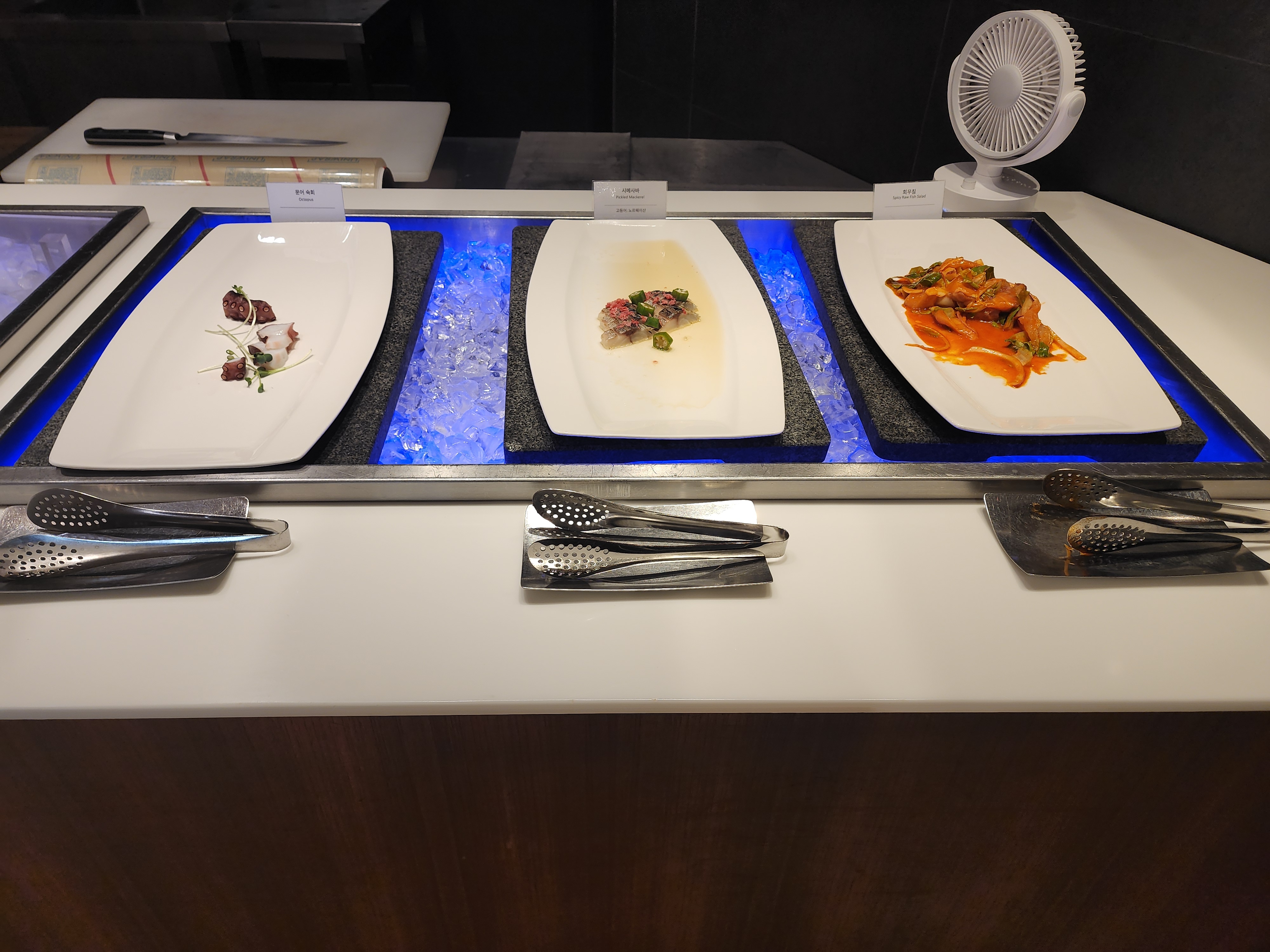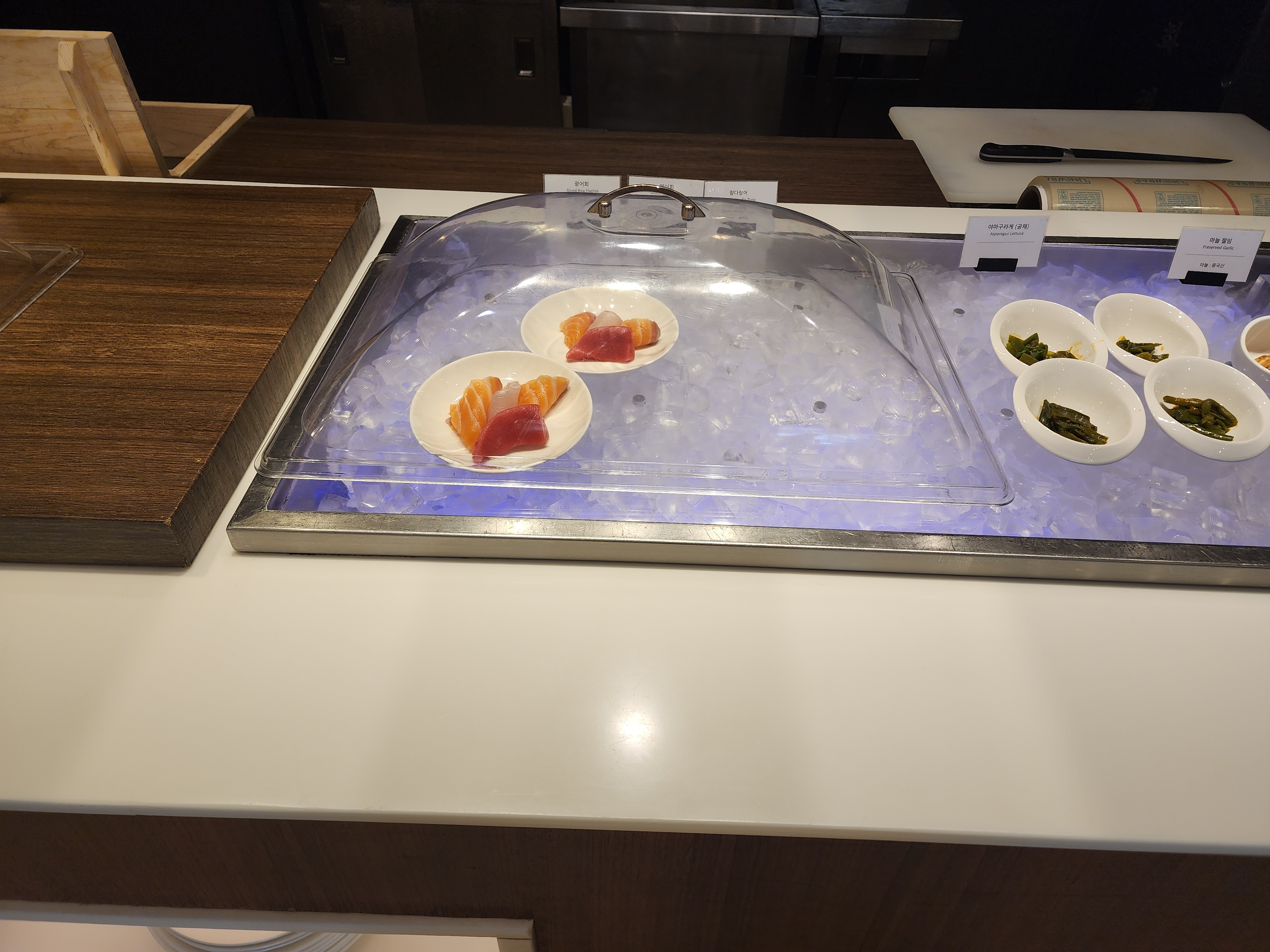 - **해산물 코너**: 참치 뱃살, 연어, 광어 등 신선한 사시미와 초밥[7]