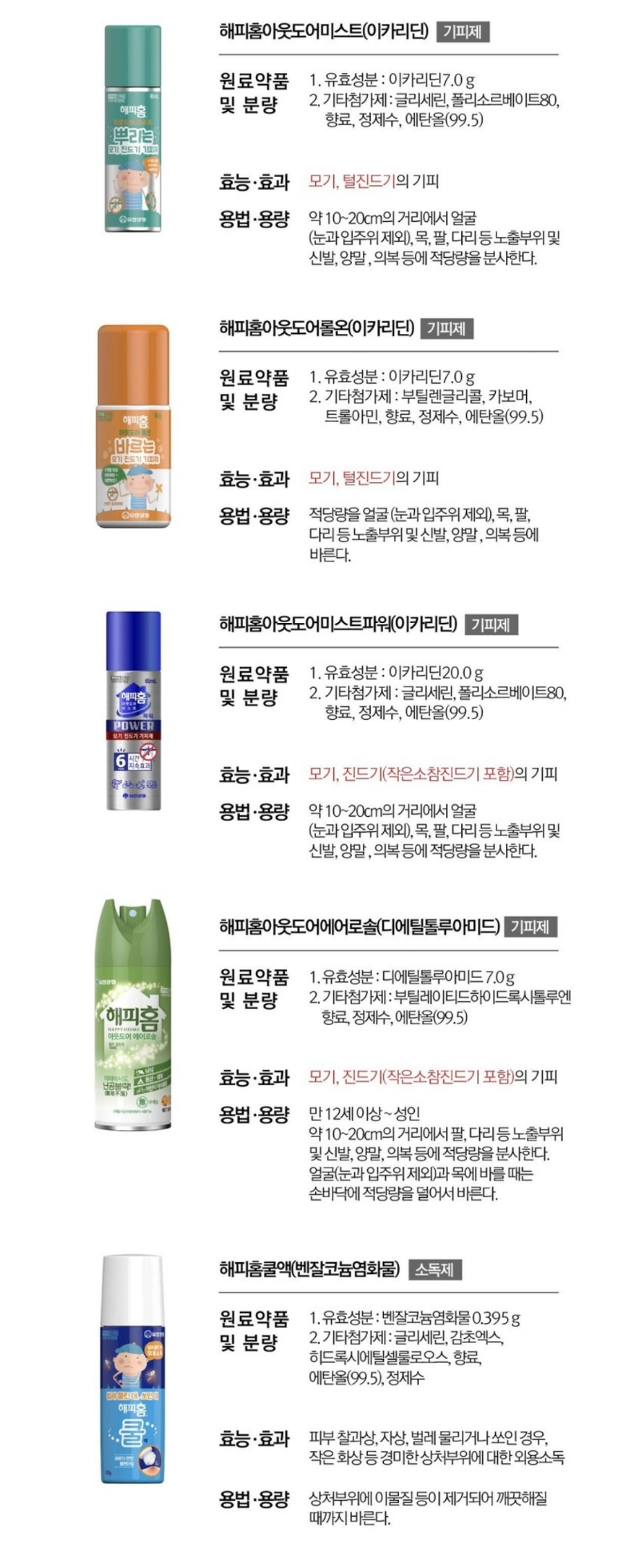몸에 직접 사용할 수 있는 모기 진드기 기피제의 주성분은 다음과 같습니다.