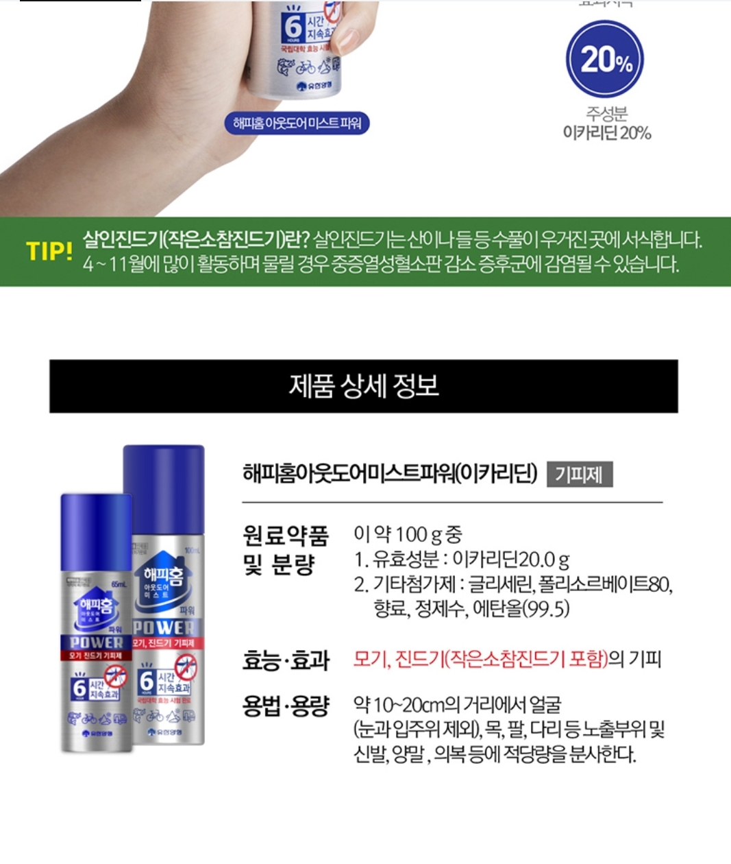 유한양행 미스트 진드기·모기 기피제 이카리딘 6개월 이상, 미스트형