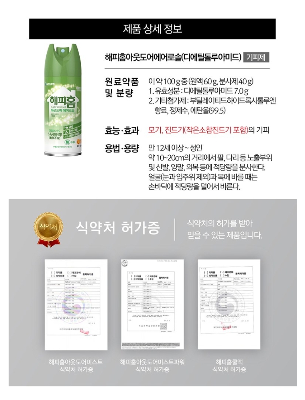 마일드가드 DEET 12세 미만 사용금지, 에어로졸형