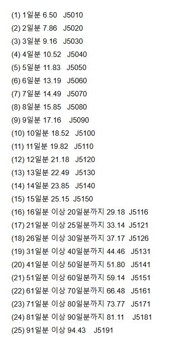 | 조제일수 | 점수 | 대략적금액 |