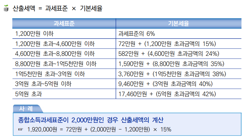 과세표준에 따라 계산되는 세금이다 (과세표준 * 소득세율)