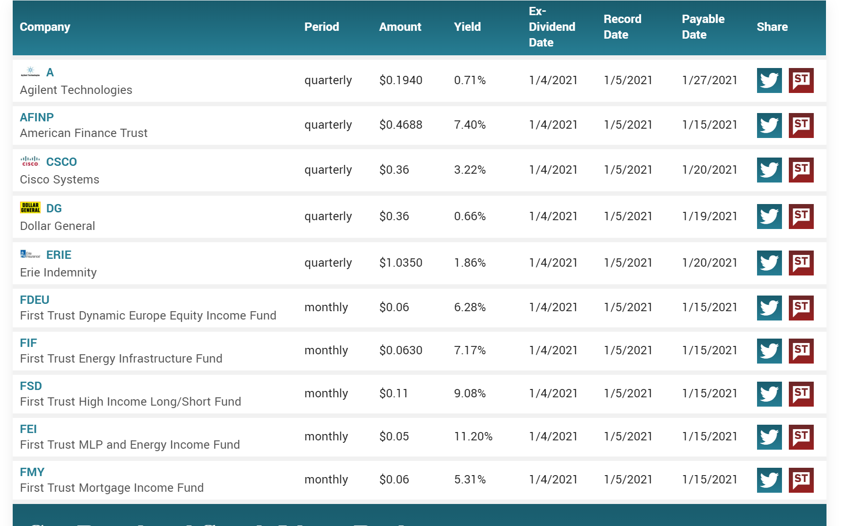 Ex-Dividend Calendar for the Week of 1/4/2021