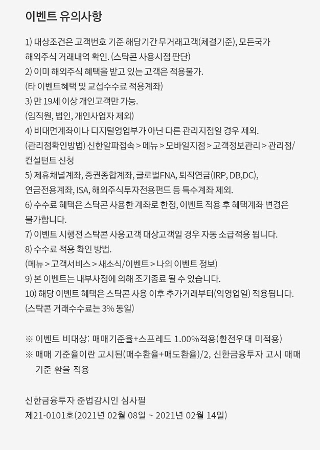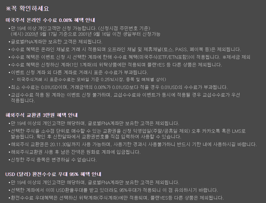 아래는 지금은 끝났지만 신한금투에서 미국주식 평생무료 이벤트를 진행했던 내용이다.