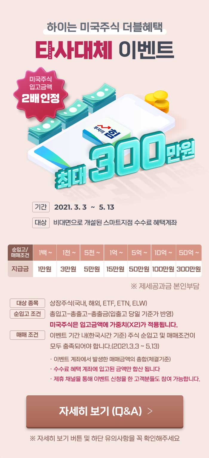 | 미래에셋 대우 타사대체입고 이벤트, 종목이관 이벤트(~4/30) (0) | 2021.03.11 |