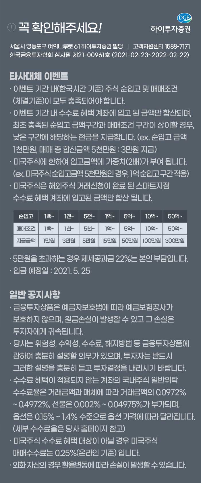 따라서 다른증권사로 나눠서 5천만원,5천만원 하느니 하이투자증권에서 1억 하는게 더 낫다.