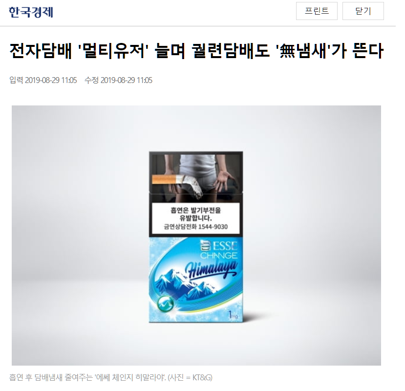 KT&G "에쎄 체인지 히말라야 1mg" 12만갑/일(다른일반담배 3~4만갑/일) 판매량