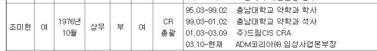 2020년 상장된 임상 CRO 업체 드림씨아이에스(코스닥)출신의 조미현 상무