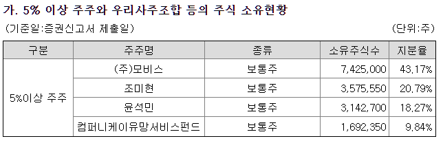 | 최대주주 | 모비스 43% | ||