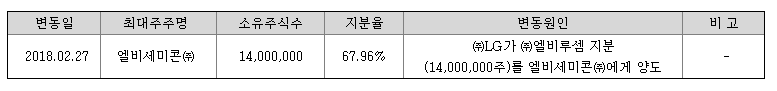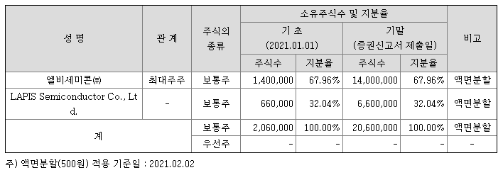 | 최대주주 | 엘비세미콘 68% | ||