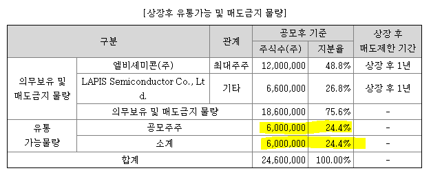 유통가능물량 적절(24.4%) 600만주