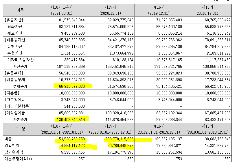 | 순이익 | 17,105 (백만원) | 자본금 | 10,300 (백만원) |