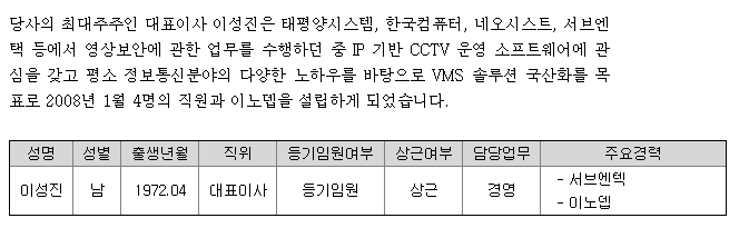 | 대표자 | 이성진 | 기업구분 | 중소일반 |