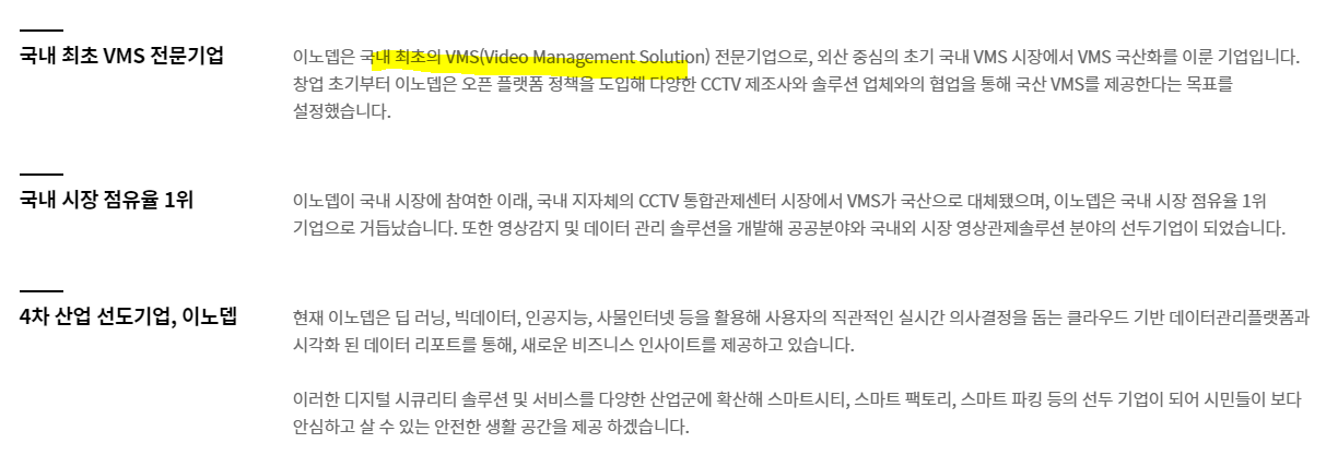 자체 AI 딥러닝 플랫폼인 'IDL(Innodep Deep-Learning Library Module)'과 딥트래커(Deep Tracker) 기술을 통해 기존 기술 대비 2배 이상의 분석 효율을 갖춘 서비스를 제공 중