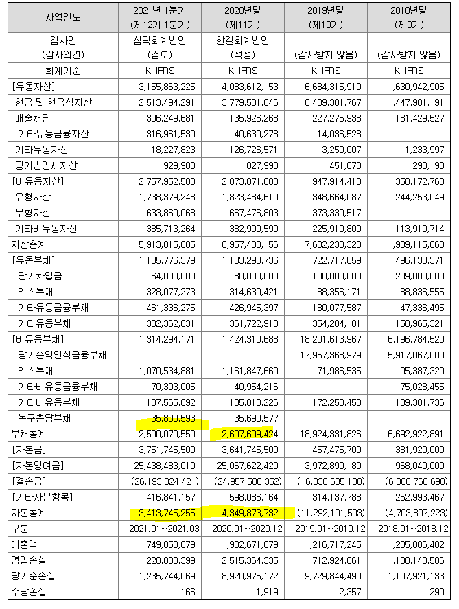 | 순이익 | -8,921 (백만원) | 자본금 | 3,751 (백만원) |