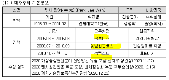 | 대표자 | 박재완 | 기업구분 | 중소일반 |