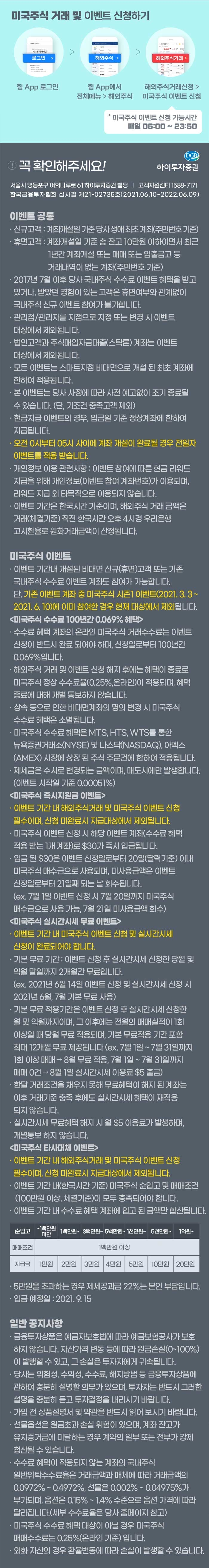 하이투자증권에서 미국주식 수수료 평생 혜택 이벤트를 한다.