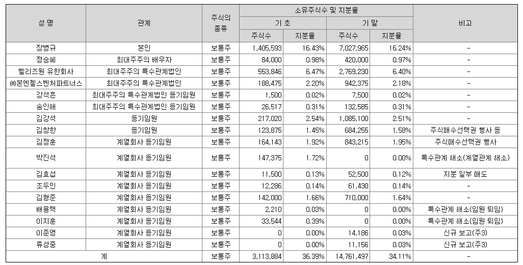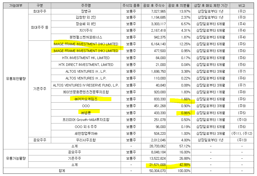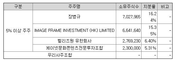 여기에는 안나오지만 카카오게임즈도 2%의 지분을 갖고 있다.