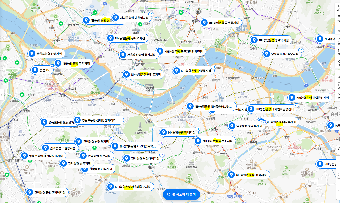 네이버 지도에 농협으로 검색을 하면 엄청 나게 많이 나오지?