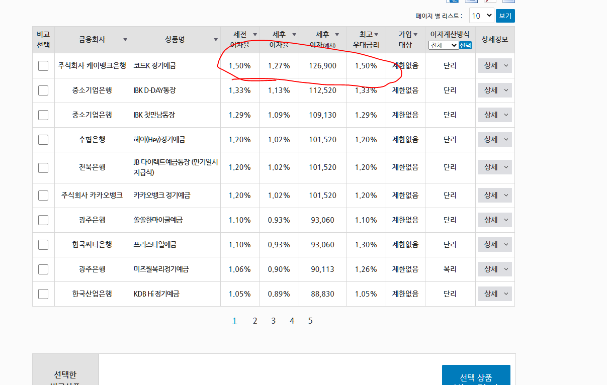 아래의 금융감독원 금리비교 사이트에서 은행으로 선택해서 검색했을때 최고 금리보다 높다면?