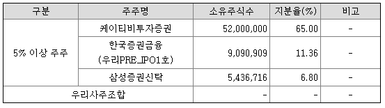 | 최대주주 | KTB투자증권 65% | ||