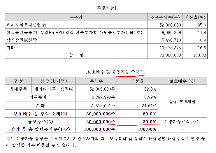 | 주간사 | 한국투자증권,NH투자증권,삼성증권,유진투자증권,하이투자증권,KB증권 | 주식수: 5,000,000~6,000,000 주 / 청약한도: 100,000~120,000 주 | |
