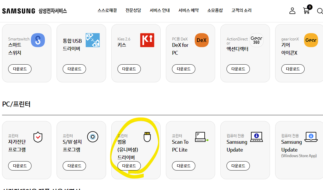 삼성서비스 센터에서 범용 프린터 드라이버를 다운받자)