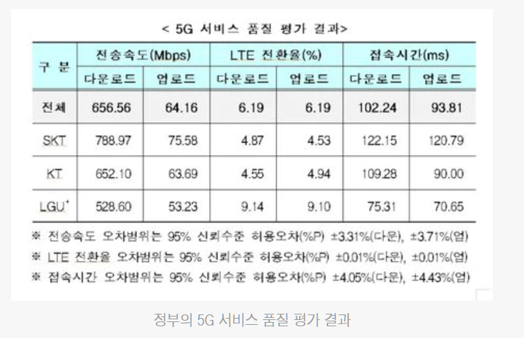 5G가 된다고 해도 5G 속도가 잘나와야 위의 표에서 보듯이 120Mb/s (약 788Mbps) 정도야