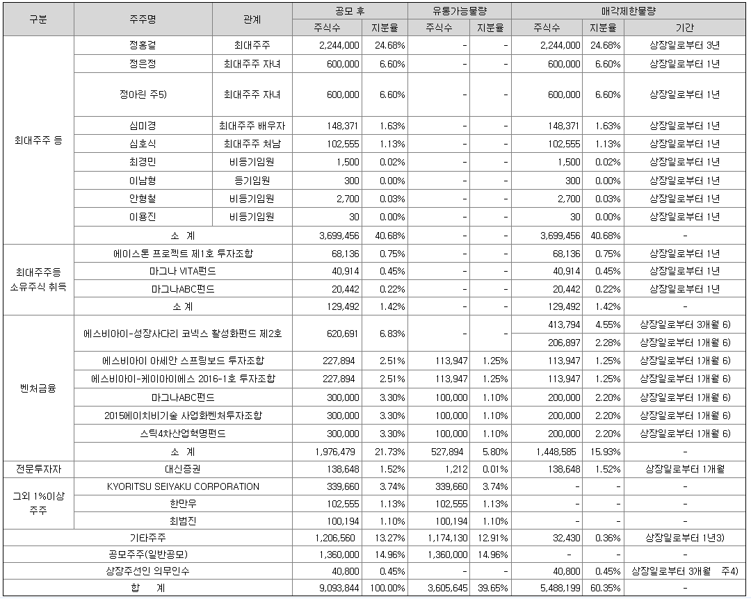 유통가능물량 360만주 39.65% 적절