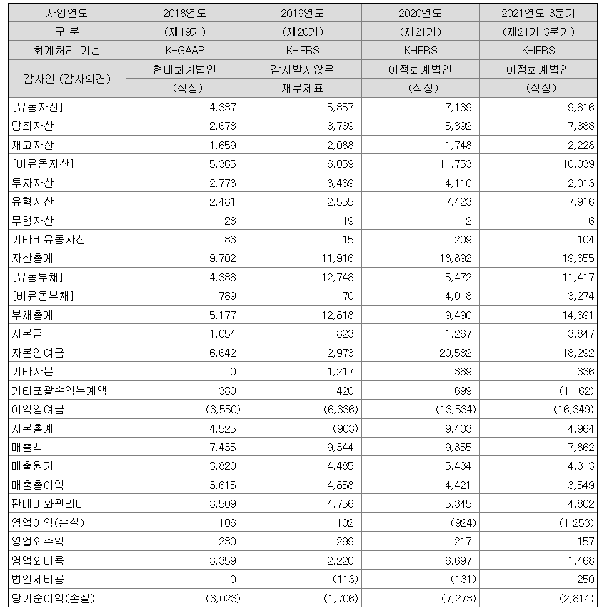 | 순이익 | -7,345 (백만원) | 자본금 | 3,846 (백만원) |