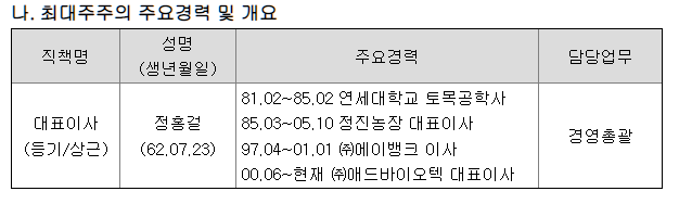 | 대표자 | 정홍걸 | 기업구분 | 중소일반 |