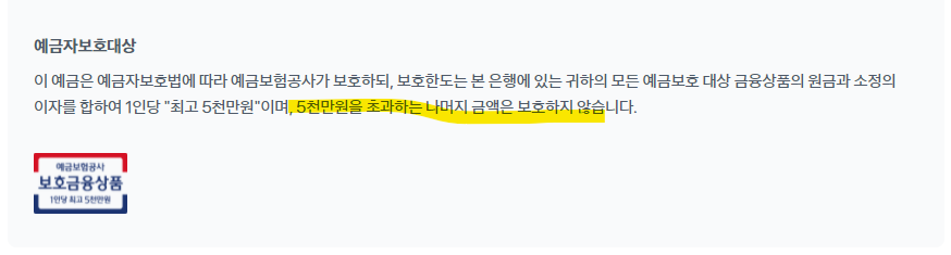 예금자보호로 5천만원까지 보호하니까 이자포함해서 5천만원 이하로 넣길 추천한다.
