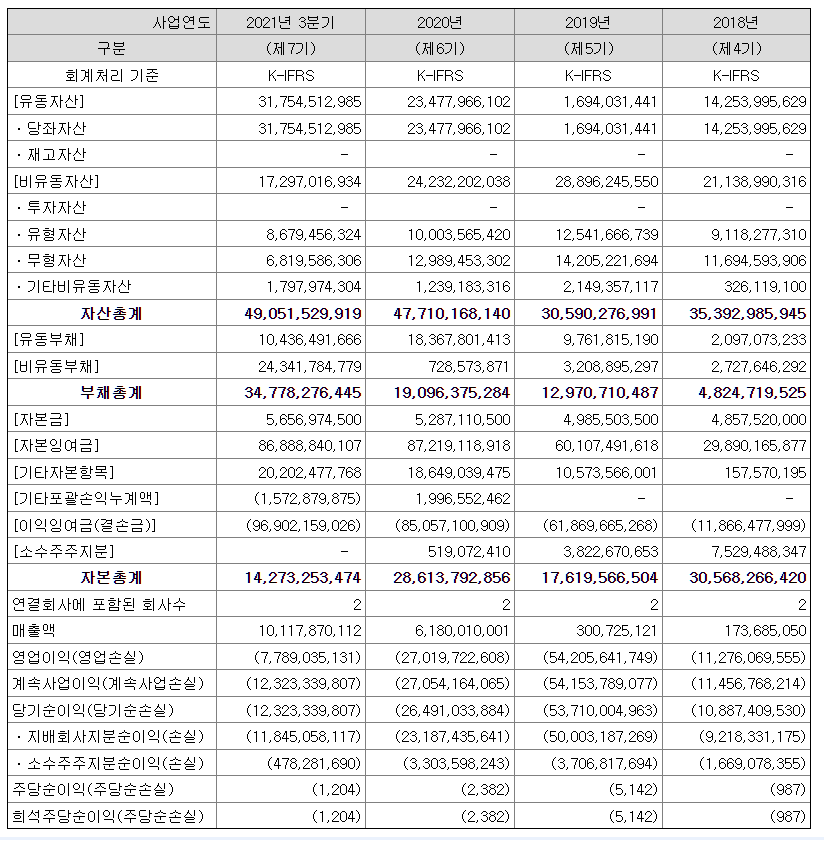 | 순이익 | -26,491 (백만원) | 자본금 | 5,656 (백만원) |