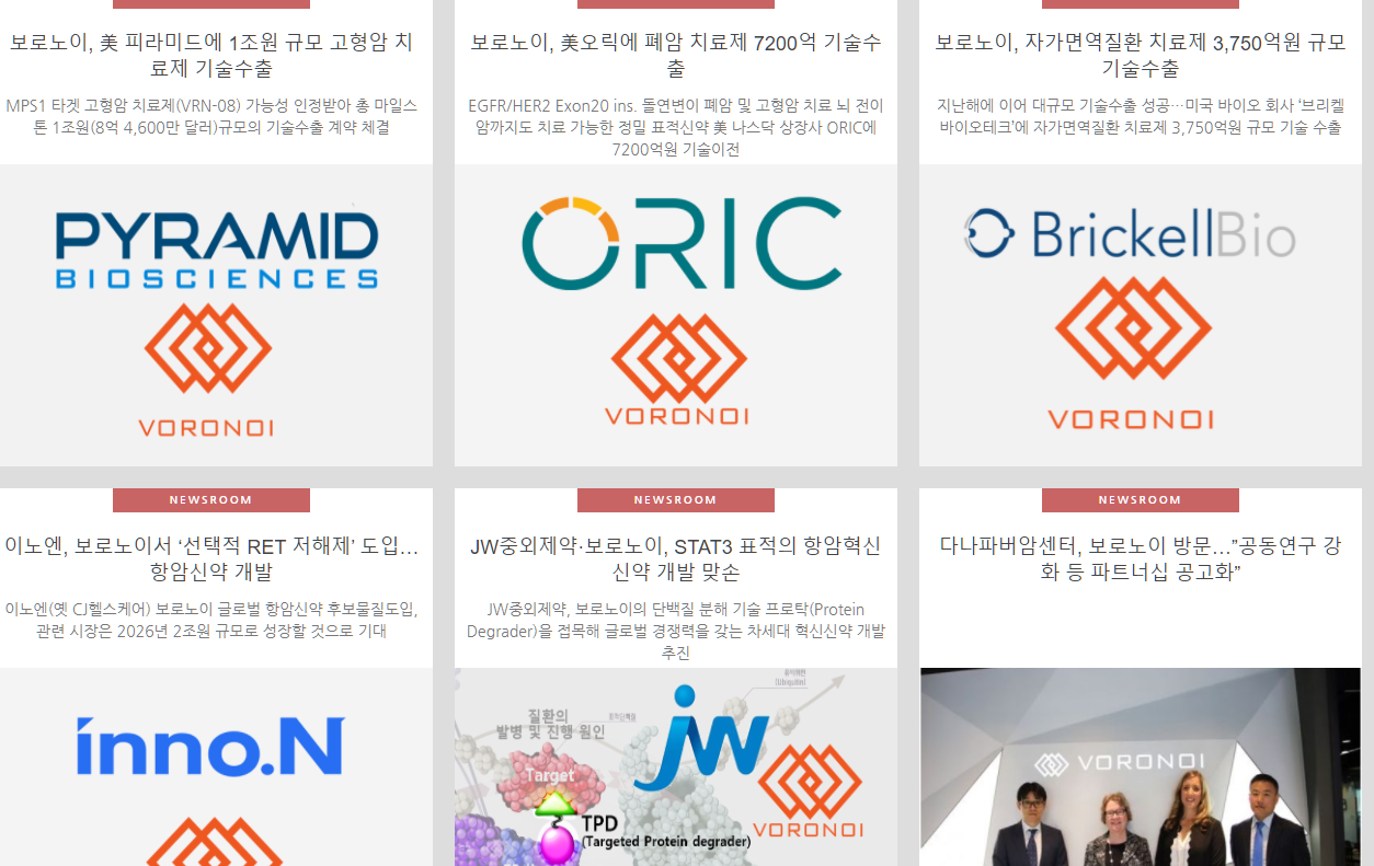 -국내외 제약사 중 최대 규모인 4000개 이상의 인산화효소 프로파일링 데이터와 1억500만개 3차원 화합물 데이터베이스를 확보했다. 이를 기반으로 컴퓨터가 최적의 물질 분자구조를 도출하는 ‘보로노믹스’를 탄생