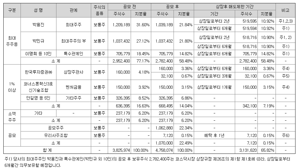 상장후 6개월이내 오버행 이슈