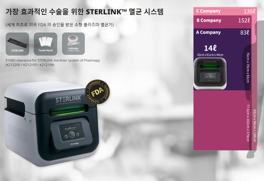 의료용 멸균기(STERLINK)는 2021년 미국 FDA 인증을 받으며 글로벌 의료기기 시장에서 약 1,500억원 수주 계약을 체결