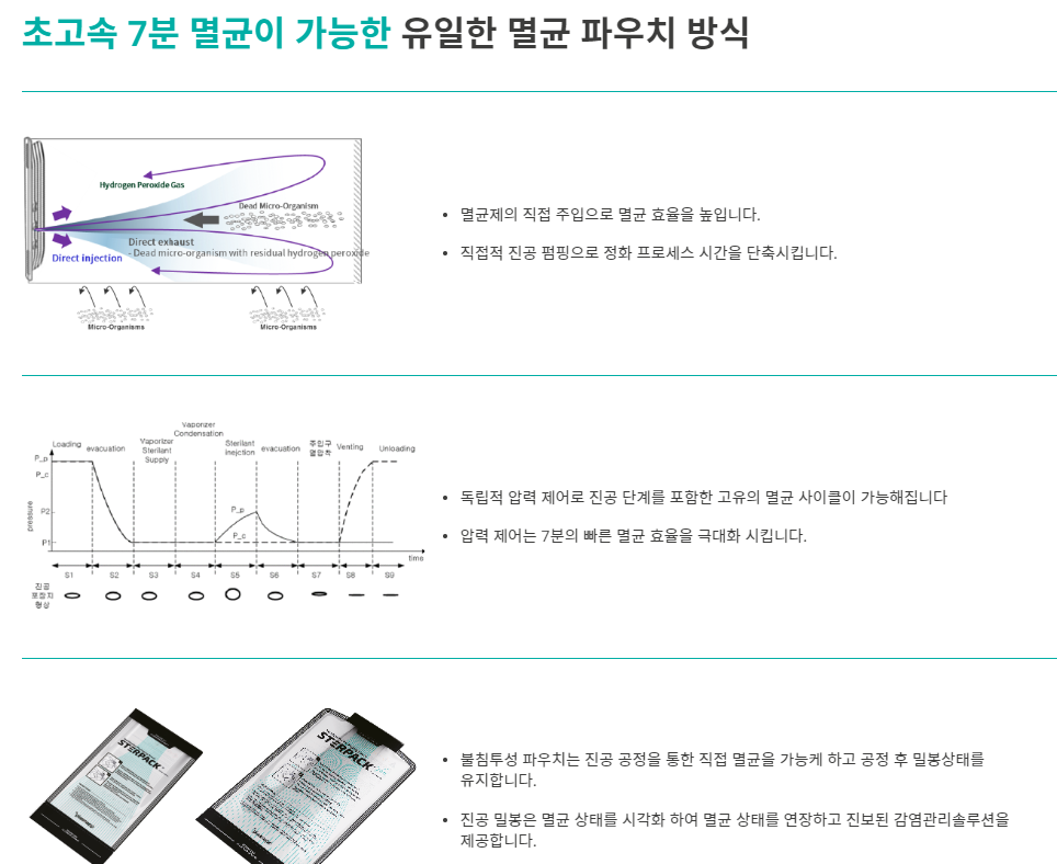 저온멸균 솔루션은 세계 유일한 불투과성 멸균 파우치(STERPACK)를 개발해 글로벌 의료기기시장에서 가장 빠른 7분 멸균 솔루션을 개발