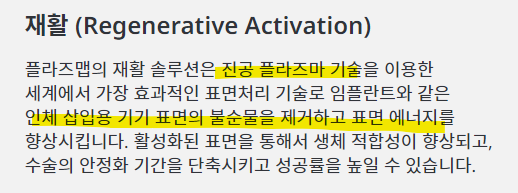 플라즈마(plasma) 기술을 수술기기 저온멸균(biological inactivation) 솔루션과 임플란트 재생활성(regenerative activation) 솔루션을 시작으로 의료기기 케어 솔루션을 개발