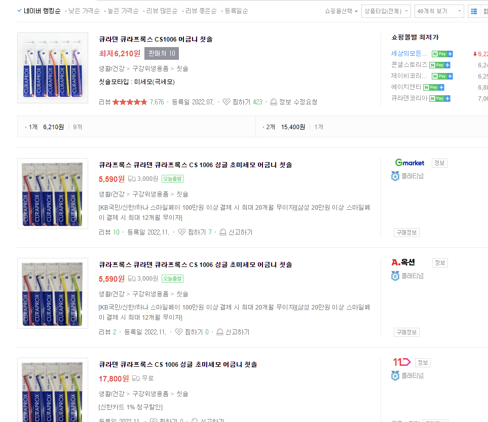 충격을 받아 칫솔을 검색해봤다. 사진보니까 똑같은 모양이 큐라덴꺼가 있노