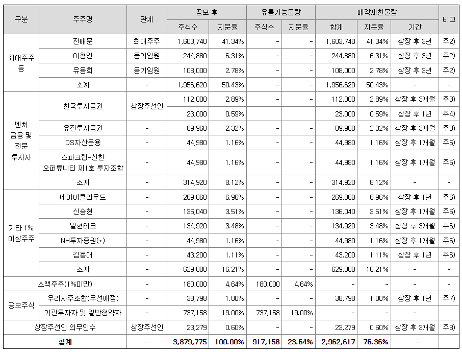 | 주간사 | 한국투자증권 | 주식수: 193,989~232,786 주 / 청약한도: 6,000~7,000 주 | |
