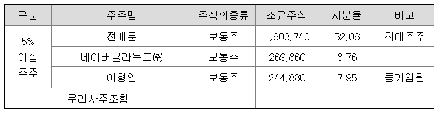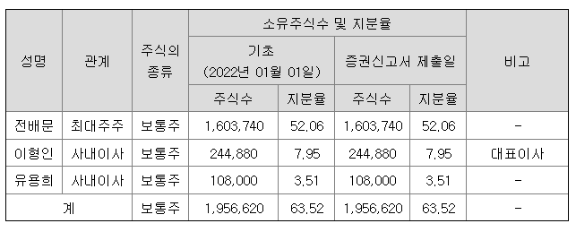| 최대주주 | 전배문 52 % | ||