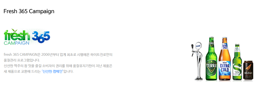 찾아보니 하이트맥주에서 프레시 fresh 365 캠페인이 있다.
