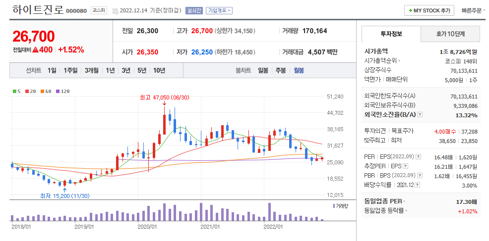 대표님과 전화가 쉽지 않으니 하이트 진로 주식을 매수하는걸로 감사인사를 대신한다.