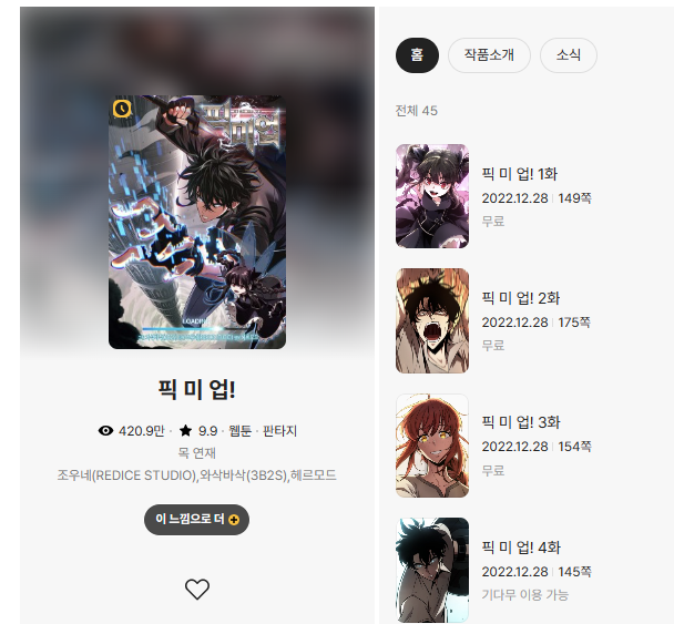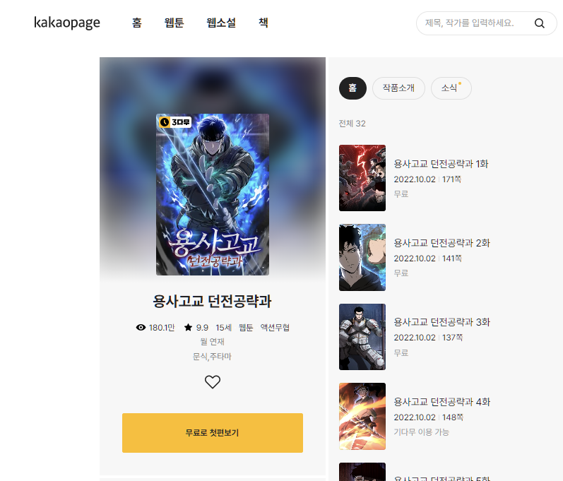 카카오페이지 그림체 좋다. 코믹 있다. 스토리 좋다.