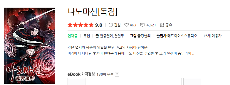 #나노마신 -네이버 웹툰 그림체 좋다. 스토리 좋다.
