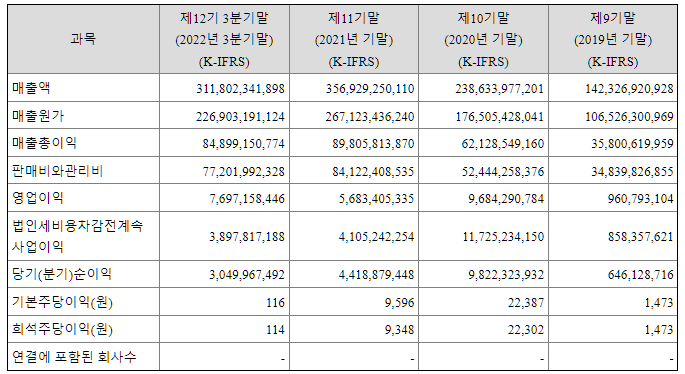 | 순이익 | 4,419 (백만원) | 자본금 | 2,806 (백만원) |