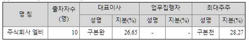 | 최대주주 | 엘비 100% | ||