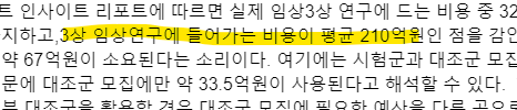 임상 3상 성공할지 안할지도 모르는상황에서 비용이 평균 210...응?